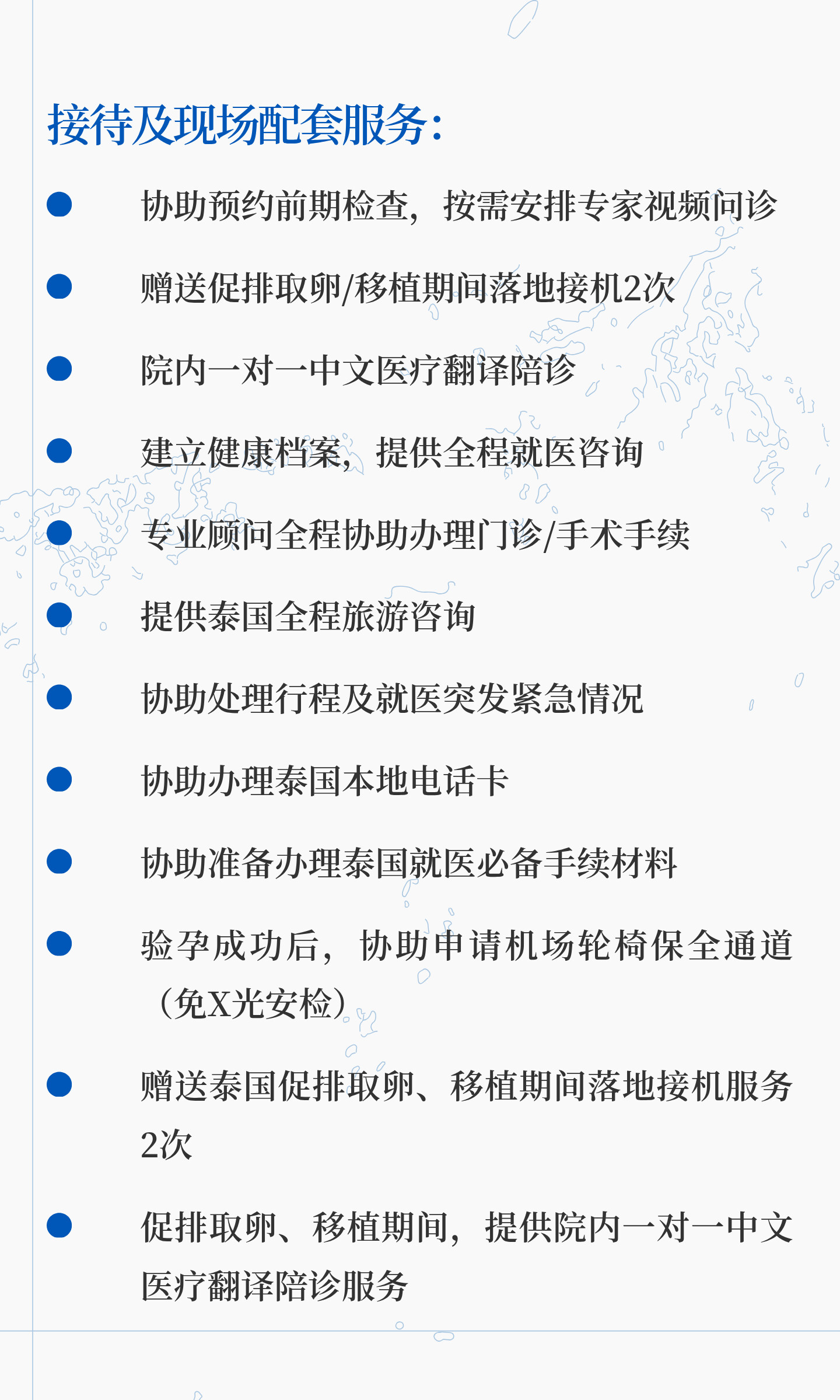 • 协助预约促排取卵、移植期间前相关检查,安排泰国专家视频问诊(按需提供)