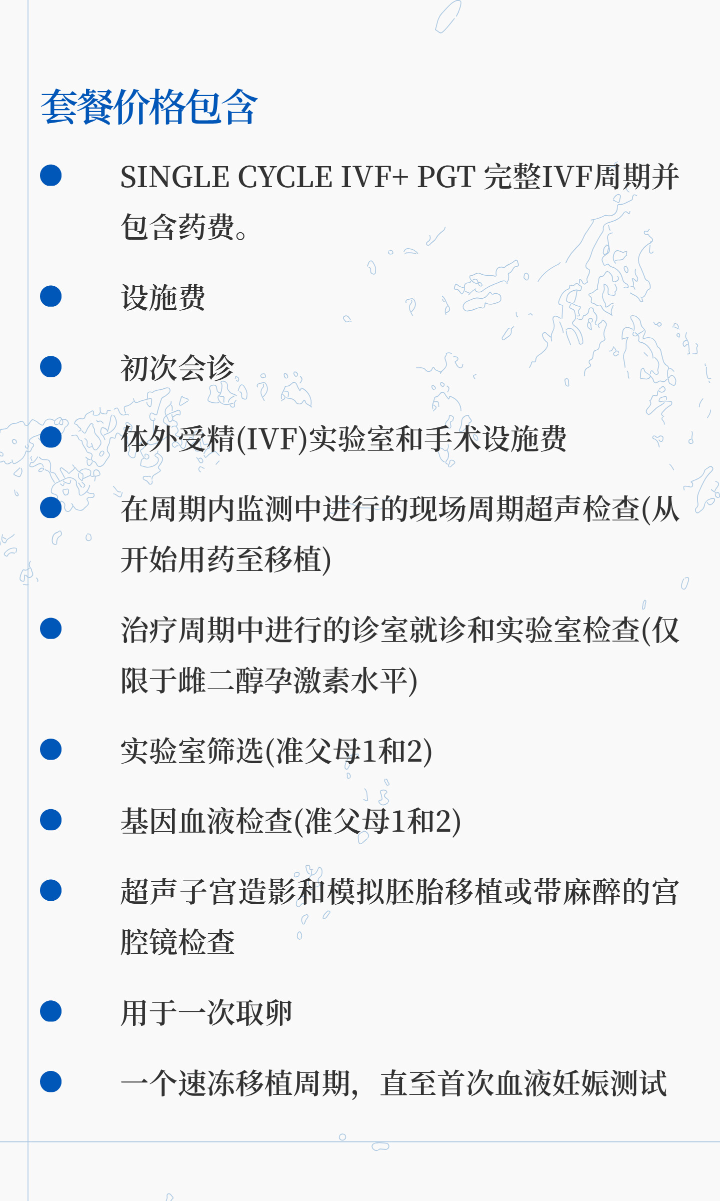SINGLE CYCLE IVF+ PGT 完整IVF周期并包含药费。