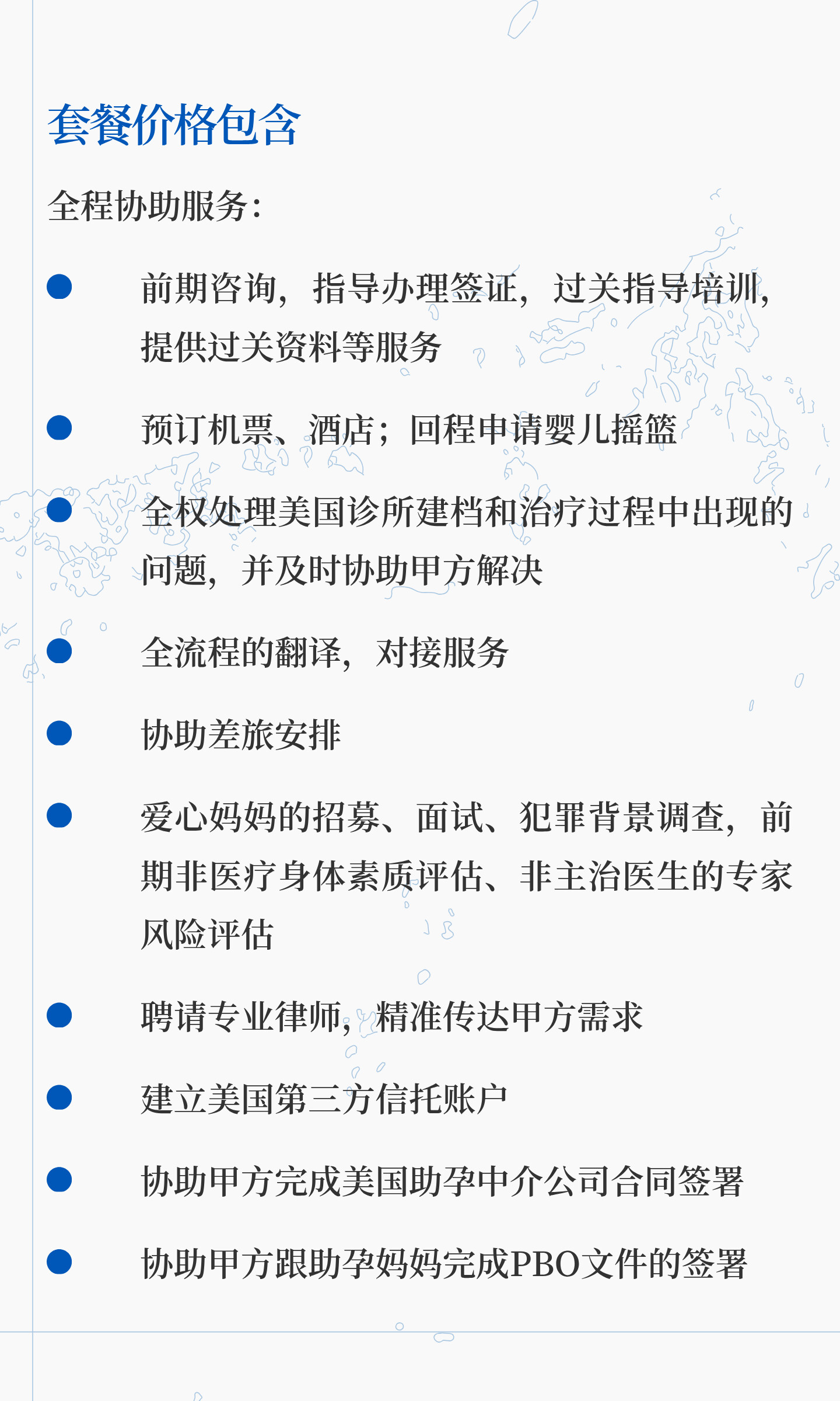 美国试管婴儿孕妈阶段全程服务,涵盖签证、医疗、律师协助及宝宝接送,助孕妈妈管理及脐带血储存全程支持。
